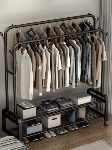 - ستاند معدني بعلاقة مزدوجة وعدة رفوف😍😍